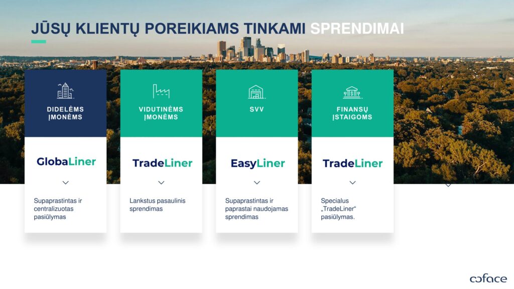 Pasiūlymo gavimui -mums reikia užpildytos anketos, bei draustinų pirkėjų sąrašo su pageidaujamu pirkėju kredito limitu, tuo pačiu nurodant ir esamą prekybos apimtį (pvz. 10 pirkėjų).